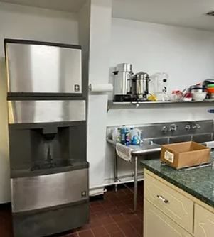 The space is able to accommodate 100+ people. Tables and chairs are included. It has a complete commercial grade kitchen, ice machine and a stage area.